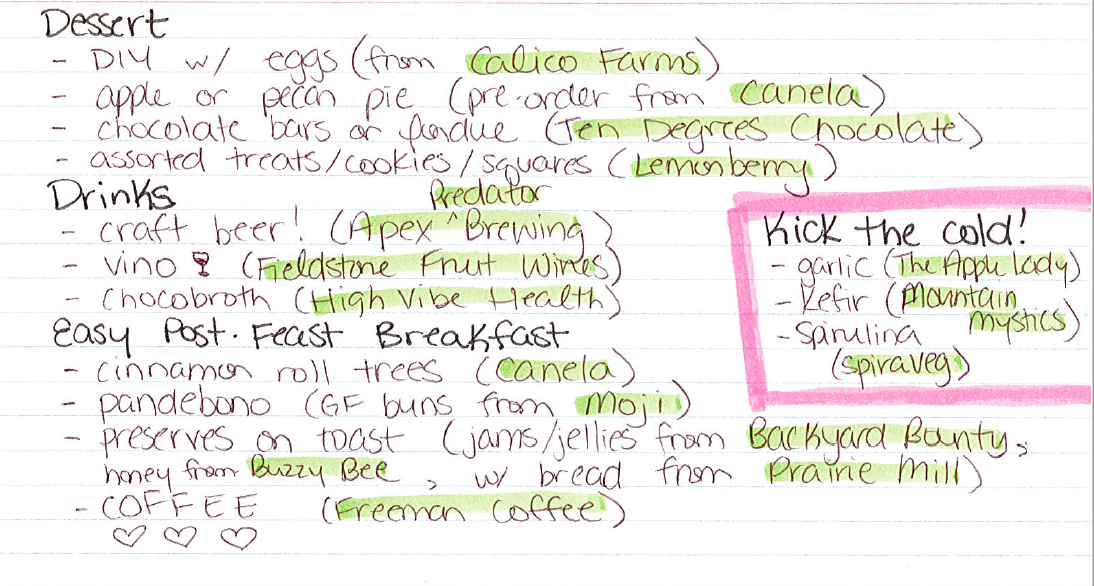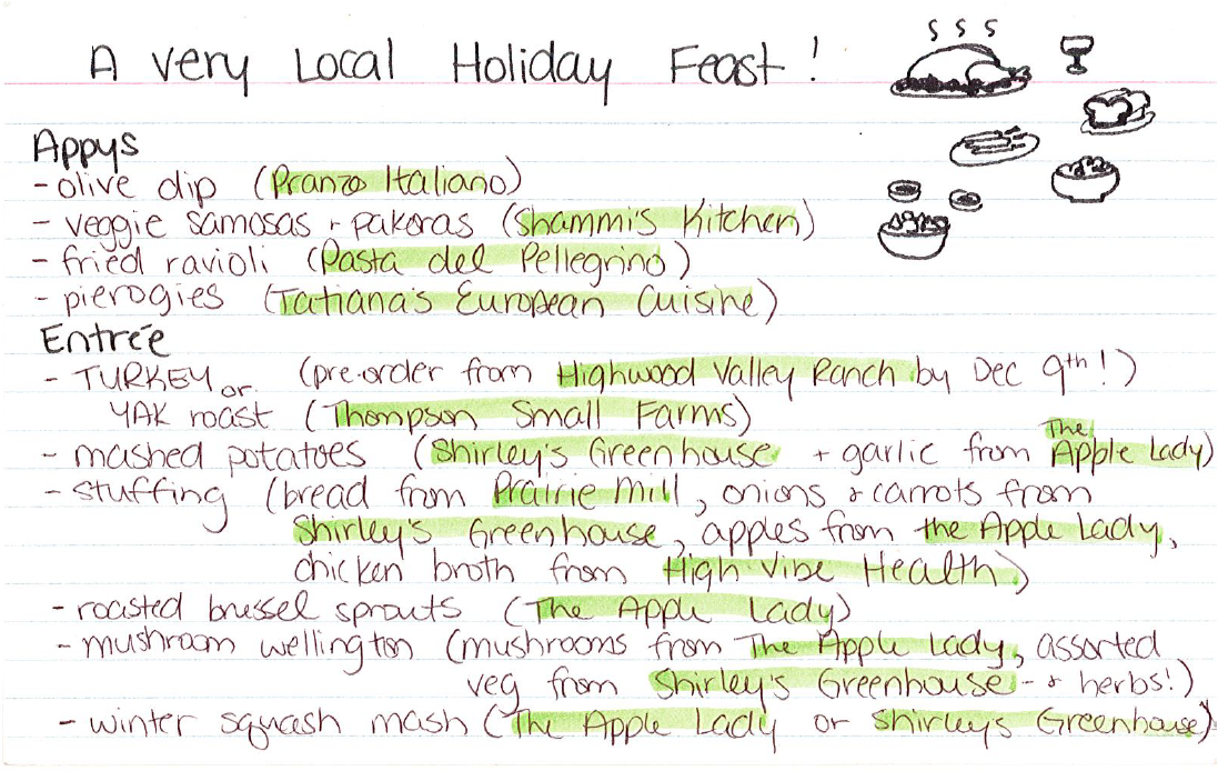 This holiday season we challenge you to make yours A Very Local Holiday- right down to the eggs in your shortbread cookies! We have made up a Holiday Feast Shopping List to show you how easy it is to source all your ingredients locally this December. (Check out our “Indoor Vendors” Page to find information about your favourite vendors, when they will be with us, and to get in touch for pre-orders!)